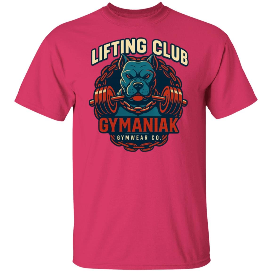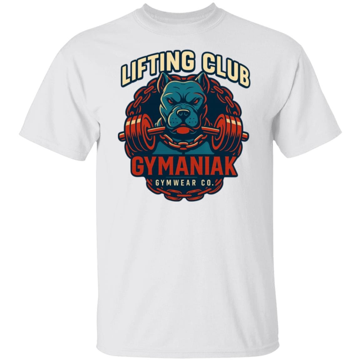 The GYMANIAK Lifting Club 5.3 oz. T-Shirt is designed for individuals who are serious about their fitness journey. Made with high-quality materials, this t-shirt offers exceptional comfort and durability, ensuring that you can focus on your workouts without any distractions. Featuring our iconic Pitbull power graphic, it is more than just a t-shirt; it’s a statement of your commitment to fitness and strength.