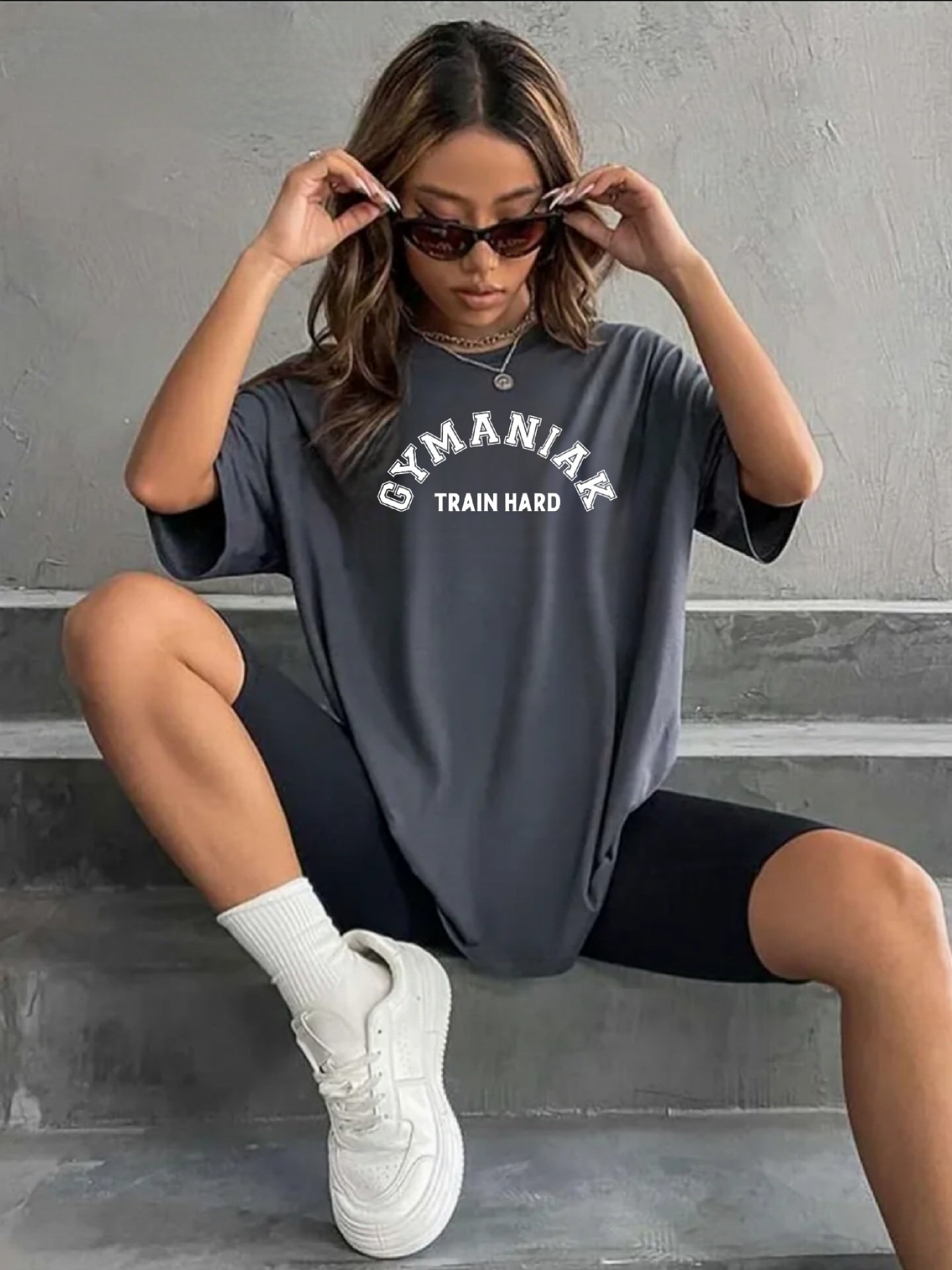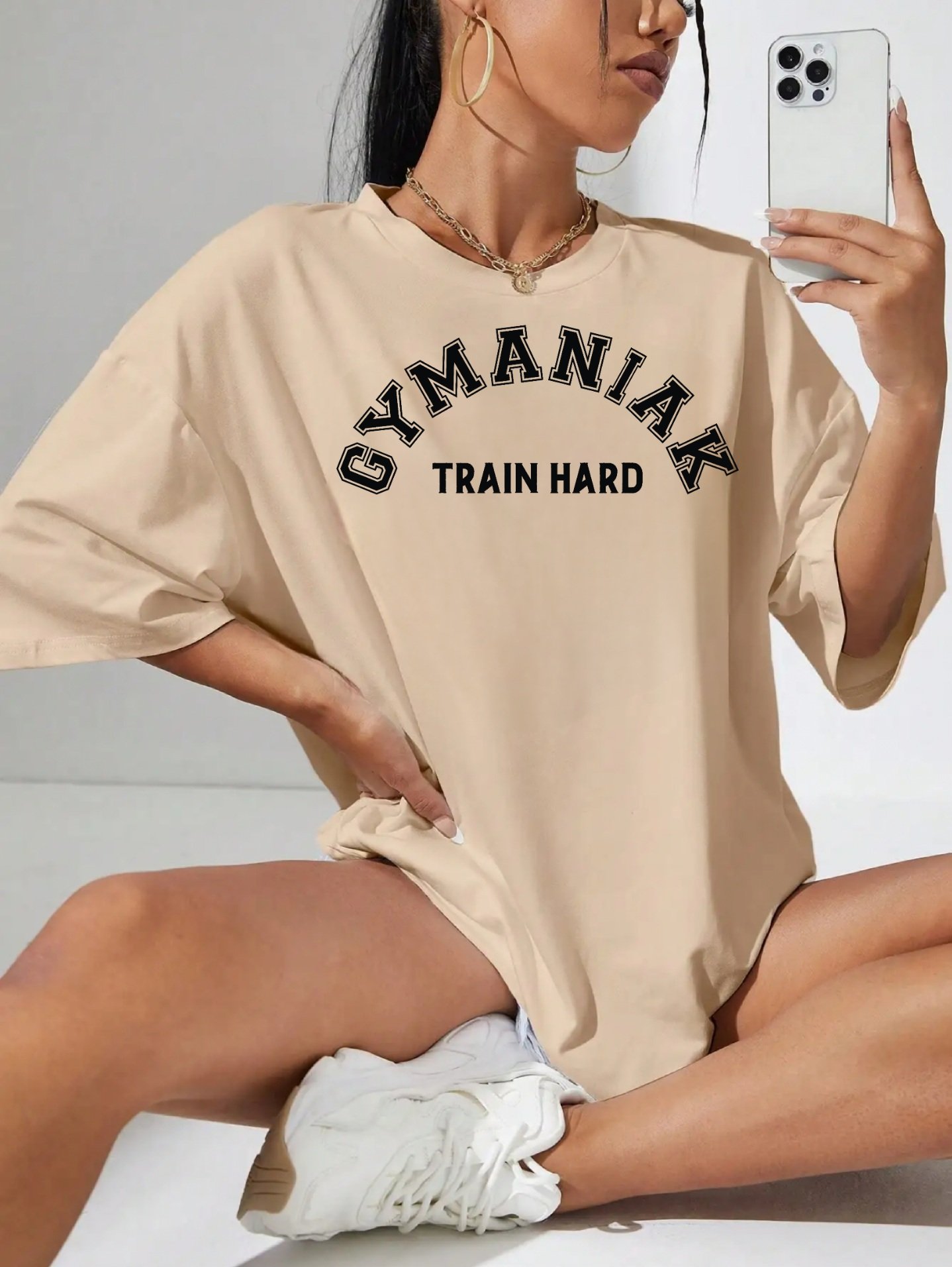 Introducing the GYMANIAK Oversized 100% Cotton Women’s T-Shirt “TRAIN HARD GYMANIAK” – the perfect blend of style and comfort for the modern woman on the go.